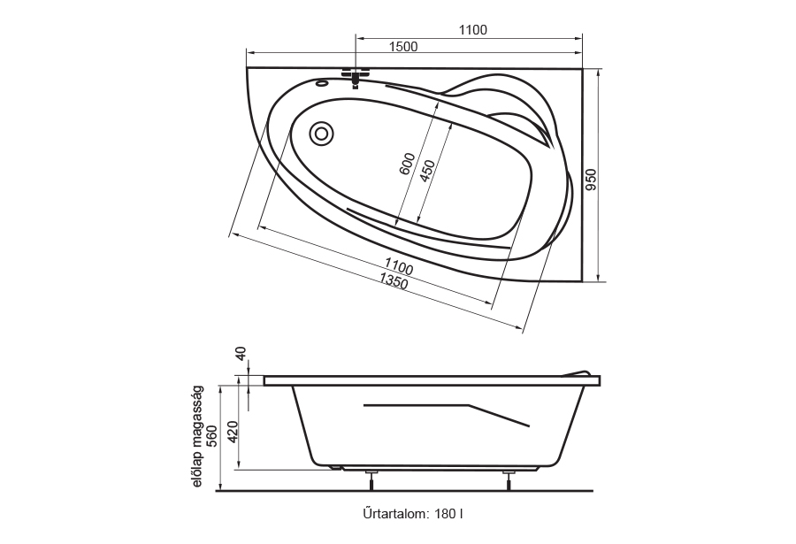 | Kád méret | 150×95 |