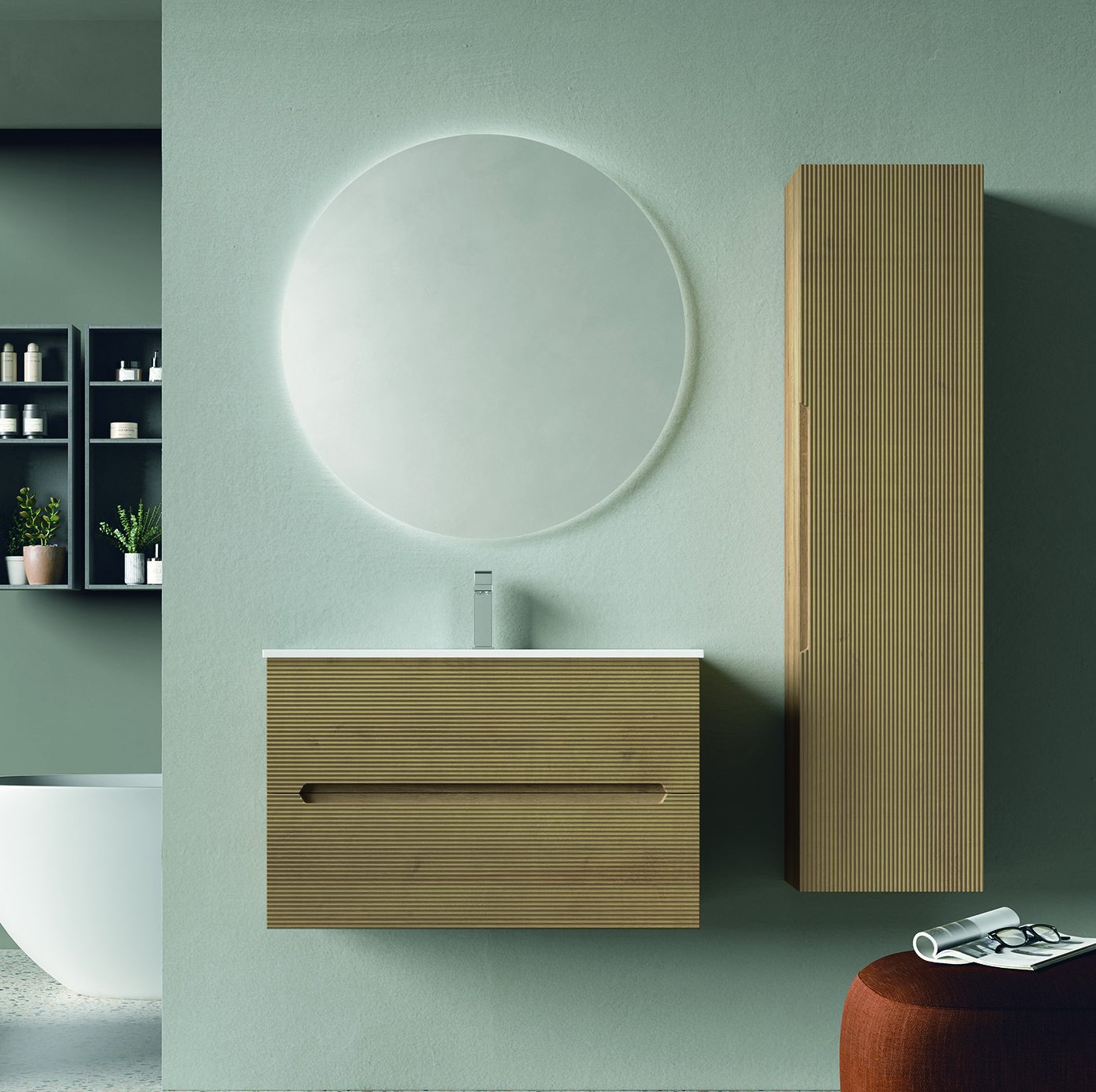 Az AdattoCasa Rigo magas szekrény Rovere Farina színben a természetes fa hatását ötvözi modern, letisztult formavilággal. A finoman bordázott (strukturált) front és az integrált fogantyú elegáns megjelenést biztosít, miközben a karcsú méret ideális választássá teszi kisebb és nagyobb fürdőszobákba egyaránt. A Rovere Farina árnyalat meleg, otthonos hangulatot teremt, jól kombinálható fehér, bézs vagy matt fekete szaniterekkel.
