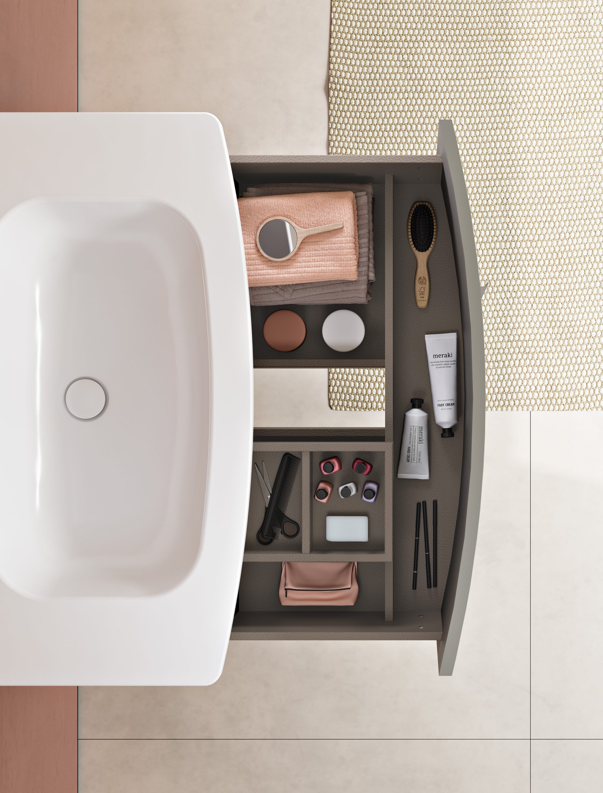 Royo Wave 1 fiókos mosdószekrény, 100x52cm- nature beige (126471)