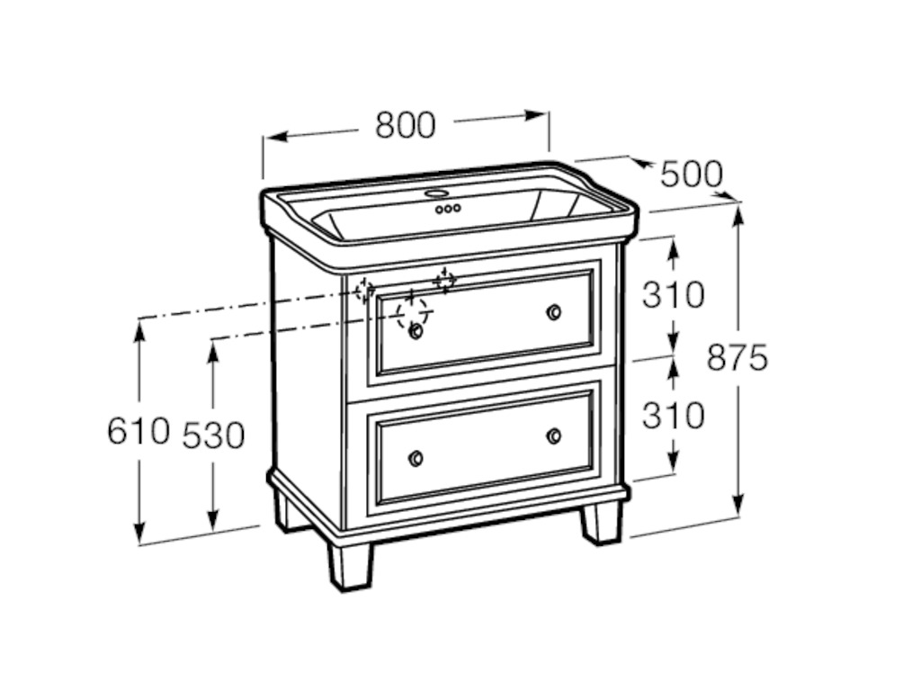 Roca Carmen bútor 80 x 50 cm , 2 fiókkal satin matt fehér színben mosdóval (A852533509)