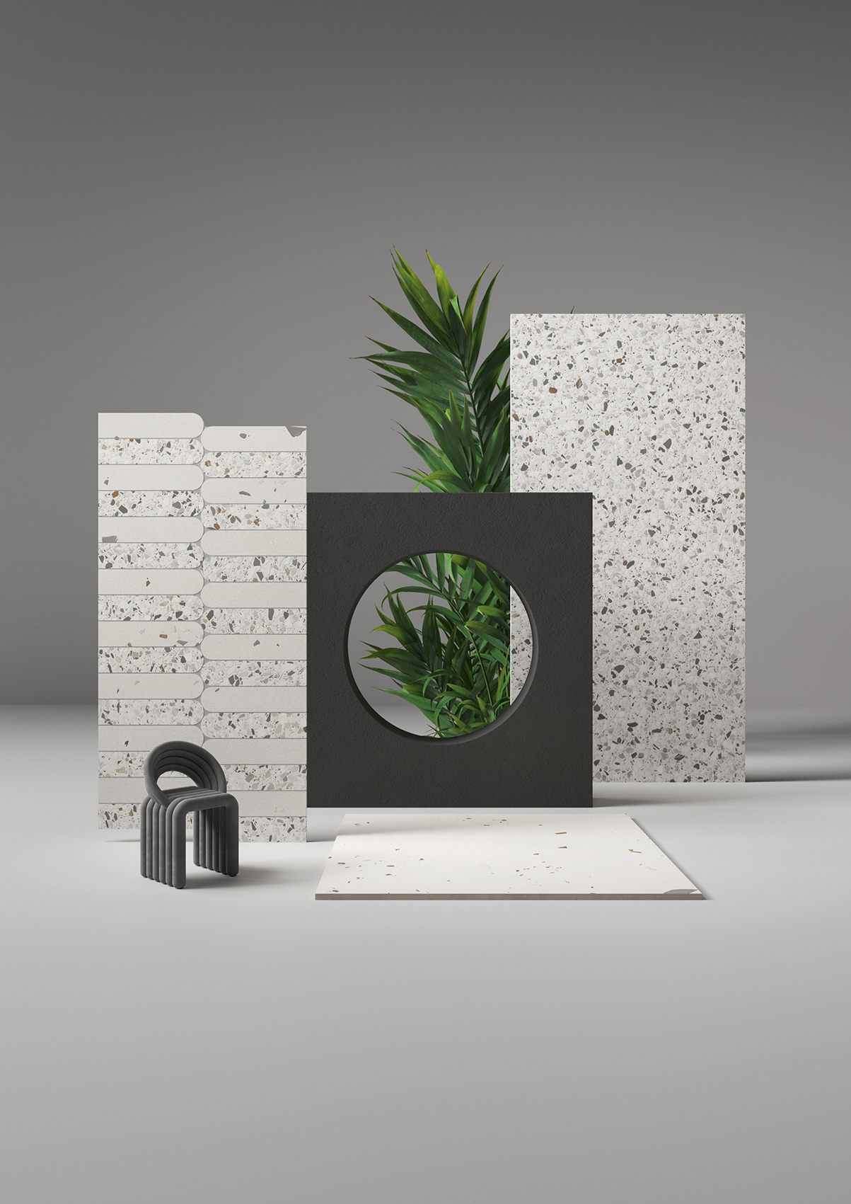 Flakes: Gazdagabb textúrájú, terrazzo hatású felület, amely érzéki és dinamikus megjelenést biztosít.