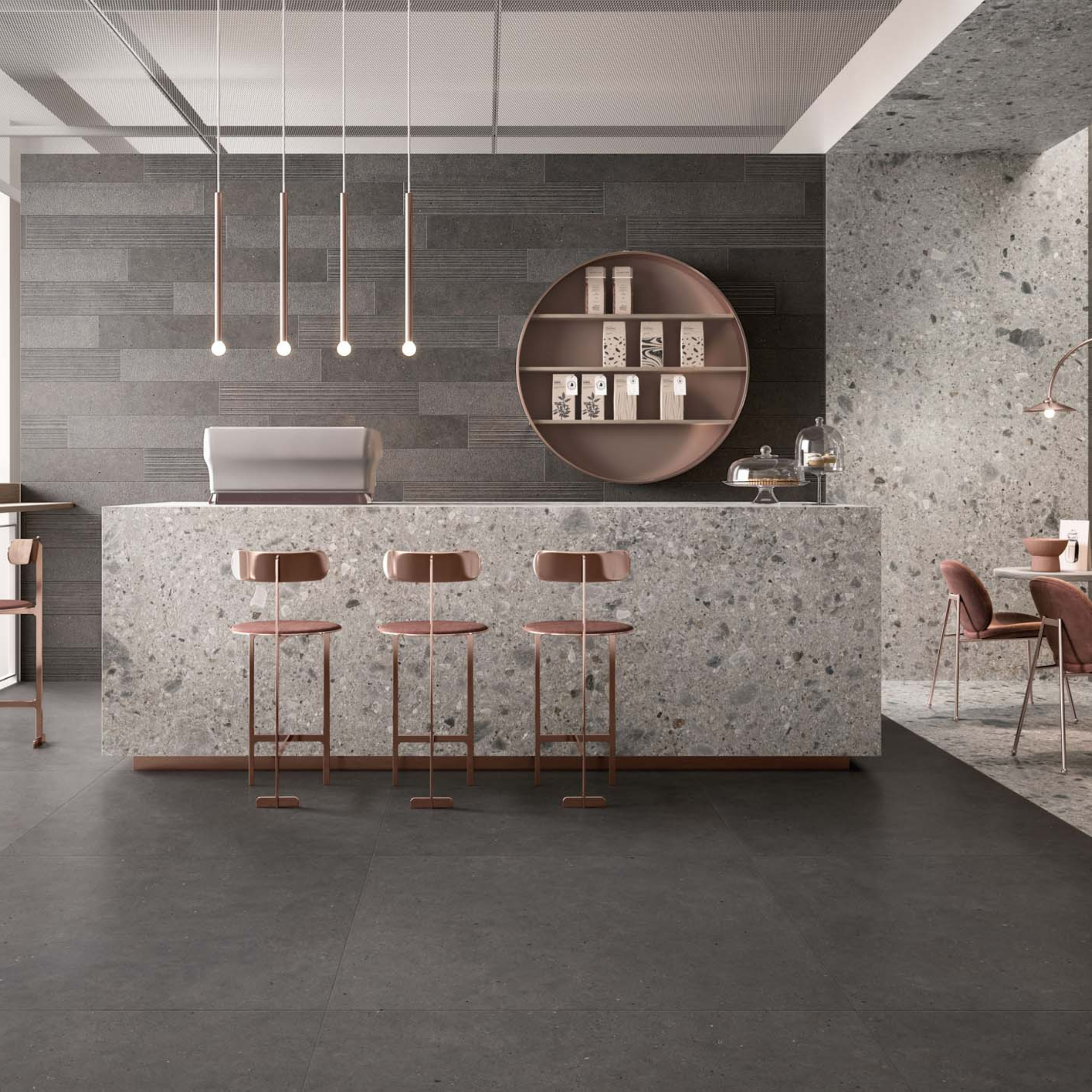 A Ceppo di Gré jellegzetes, kavicsos mintázata erőteljes vizuális karaktert ad a tereknek, míg a Silver Grain finomabb szemcsézettségével, elegánsabb, homogénebb összhatást biztosít. A két kőhatás tökéletesen kombinálható egymással, így változatos, mégis harmonikus enteriőrök alakíthatók ki.