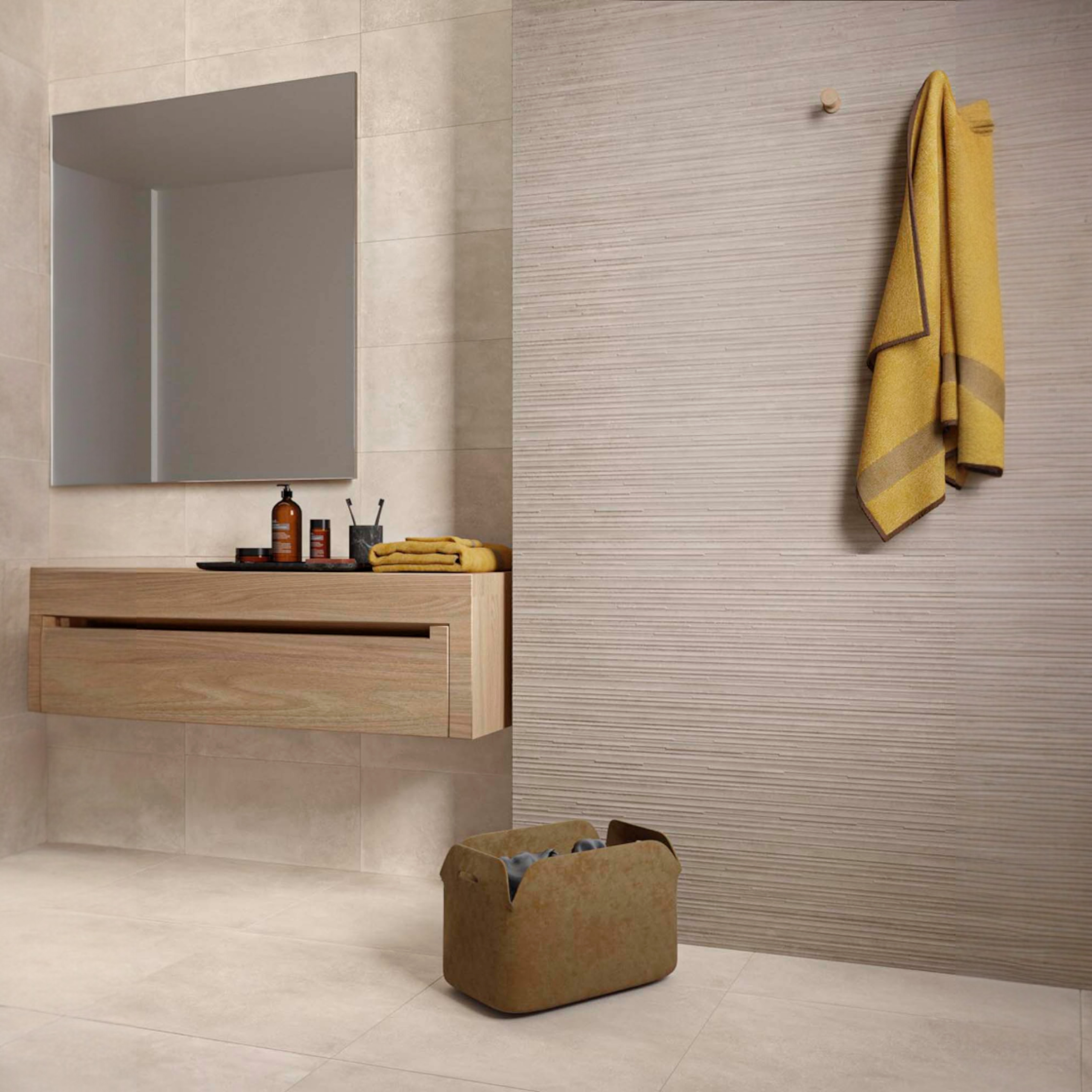 A kollekció középpontjában a beton heterogén természete áll. A Glitch nem elfedi, hanem tudatosan kiemeli a betonra jellemző apró hibákat és nyomokat: repedéseket, patinákat, karcokat és az időjárás okozta elváltozásokat. Ezek az elemek harmonikusan újraértelmezve jelennek meg porcelán gres burkolatok formájában, erőteljes, karakteres vizuális hatást keltve.