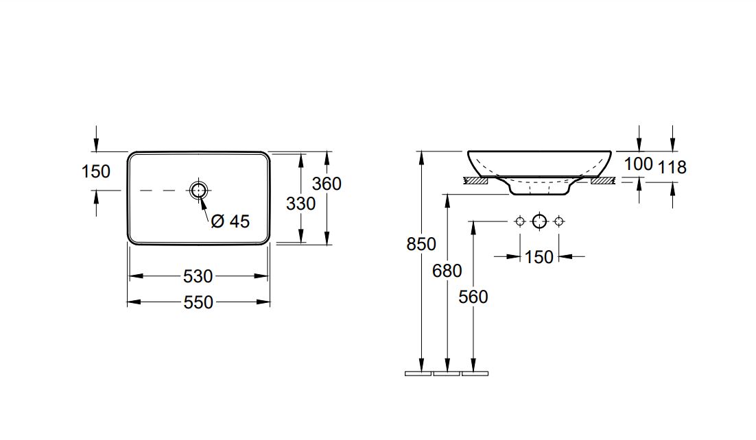Villeroy & Boch Venticello Mosdó 55 x 36 cm, Ceramicplus Bevonattal (411355R1)
