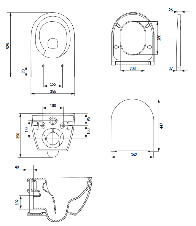Kialakítás: fali függesztett WC szett