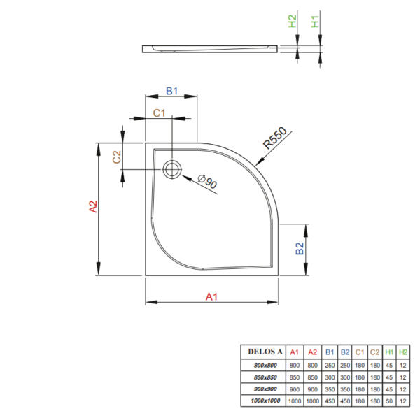 Radaway Delos A 90×90 akril zuhanytálca, ajándék szifonnal