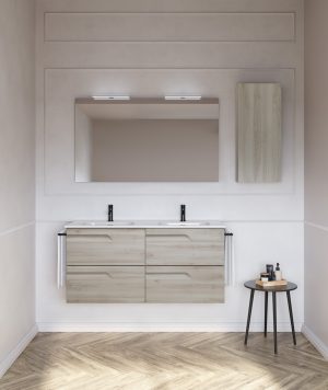 Bannio Vitale 120-as fürdőszobabútor fali- nature white színben- dupla mosdóval – tükörrel – led világítással (72979-k)