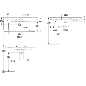 Villeroy & Boch Architectura Mosdó 100×45 cm ,Fehér Alpin, túlfolyóval (4A87A501)
